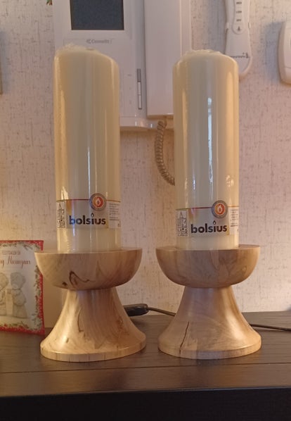 Kaarsenstandaard voor dinerkaarsen gemaakt van Pruimenhout.